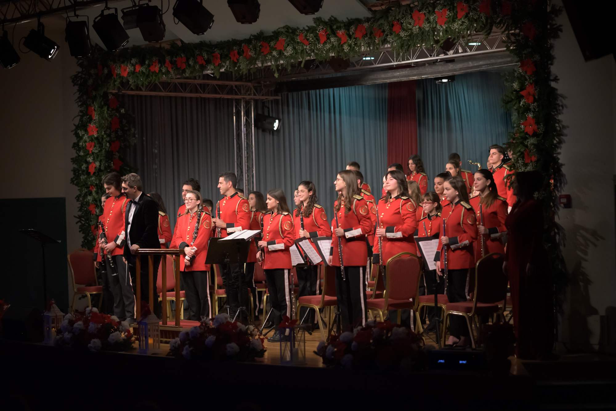 Η καθιερωμένη διοργάνωση “Xmas με τη Φιλαρμονική” ξεκίνησε με μία όμορφη τελετή, την Κυριακή 3 Δεκεμβρίου 2023. Ο Δήμαρχος κ. Γεώργιος Γκιώνης έκανε την αντίστροφη μέτρηση αποκαλύπτοντας ένα υπέροχο εορταστικό σκηνικό που επιμελήθηκαν με αγάπη και φροντίδα μέλη της Φιλαρμονικής και ο αρχιμουσικός με τη συνδρομή του Νίκου Γλέζου και του Αντιδημάρχου καθαριότητας κ. Αθανάσιου Μουζάκη.  Στο πνεύμα των ημερών, η χορωδία της Φάλιας Παπαγιαννοπούλου από τη Μαδριγάλειο Μουσική Σχολή, η Μικτή Χορωδία Λουτρακίου με μαέστρο το Γρηγόρη Παντελέων, η μπάντα και το κουιντέτο χάλκινων πνευστών της Φιλαρμονικής, πλημμύρισαν με μελωδίες τους εσωτερικούς και εξωτερικούς χώρους του κτηρίου. Τα κεράσματα και το ζεστό κρασί που προσφέρθηκαν στους καλεσμένους ήταν προσφορά των γονέων των μαθητών του μουσικού σώματος αλλά και του Συλλόγου Φίλων της Φιλαρμονικής. Η διοργάνωση συνεχίστηκε με τη συναυλία των καθηγητών χάλκινων πνευστών “Εν χορδαῖς και Οργάνω”, την εκδήλωση για τη Μαρία Κάλλας και την ετήσια Πρωτοχρονιάτικη Συναυλία.