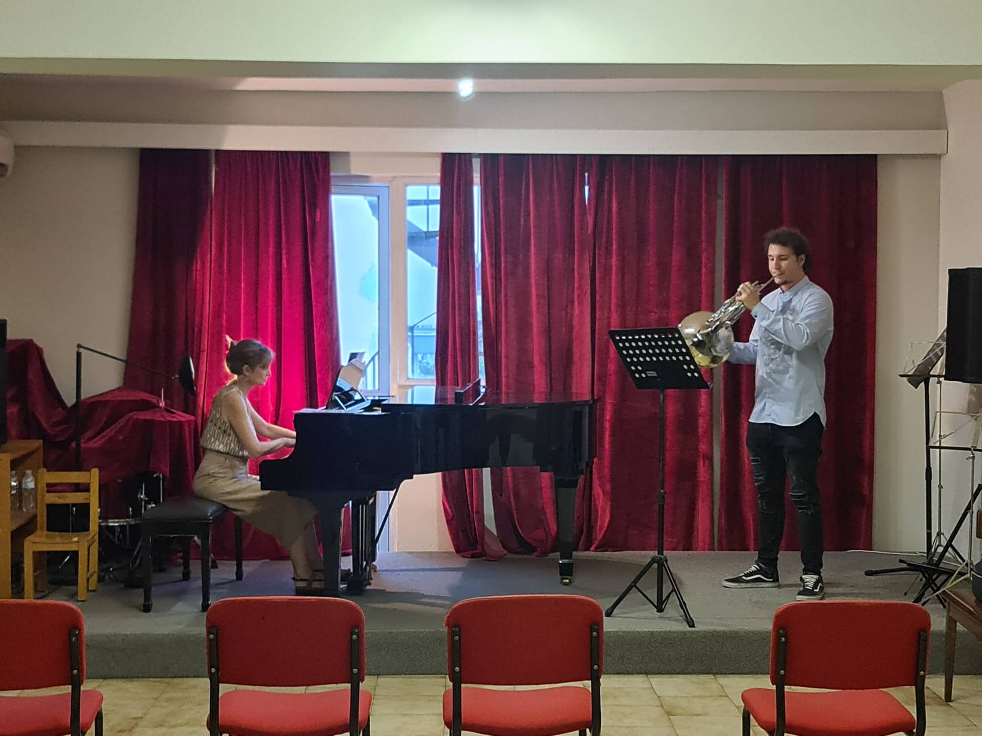 Κατά τη διάρκεια των εξετάσεων ερμήνευσε, συνοδεία πιάνου, το 2o κοντσέρτο του W. A. Mozart, το 1ο κοντσέρτο του Richard Strauss και το έργο Tantalus του Keniv Huben.