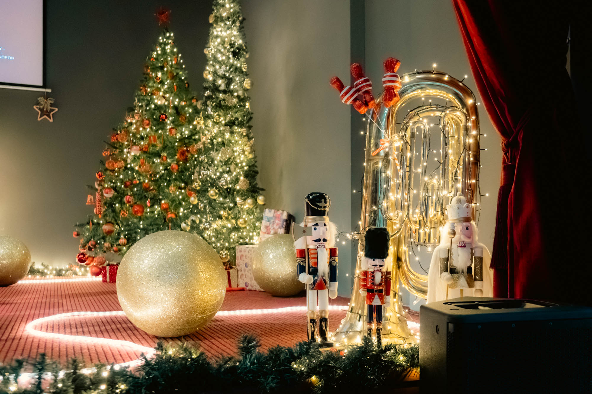 Ο ειδικά διαμορφωμένος και στολισμένος χώρος της Φιλαρμονικής αποτελεί μία από τις ομορφότερες γωνιές της πόλης, καθώς δημιουργήθηκε με πολύ μεράκι από τα μέλη της Φιλαρμονικής, τους εθελοντές και τα συνεργεία του Δήμου. Τα ζεστά φώτα, οι στολισμοί και η γιορτινή ατμόσφαιρα συνέβαλαν ουσιαστικά στη μαγευτική εμπειρία του κοινού!